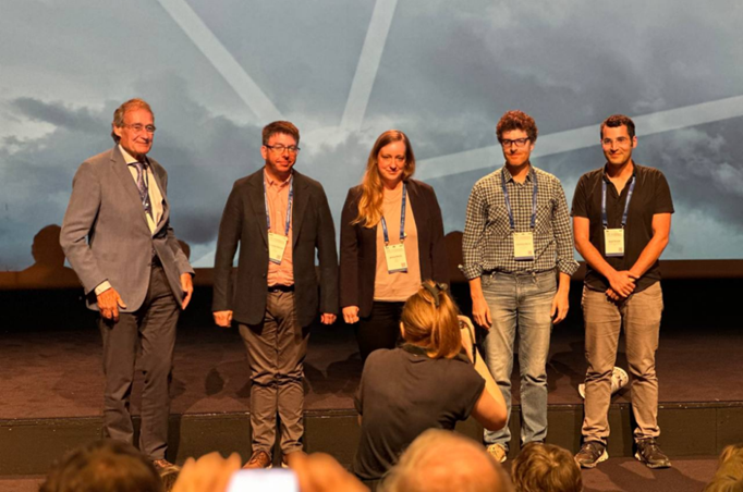 Chris Barnard (second from left), and Jessica Keune (third from left), representing ECMWF and CENTAUR at the Harry Otten Prize Session held within the European Meteorological Society Annual Meeting 2025. Credit: Siham El Garroussi.