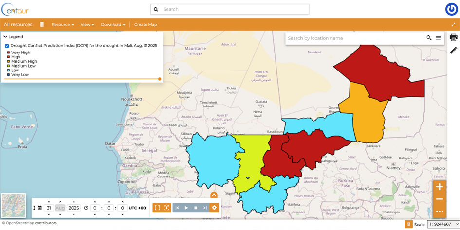 Example from the CENTAUR platform illustrating the application of the Drought Conflict Prediction Index (DCPI) in Mali.